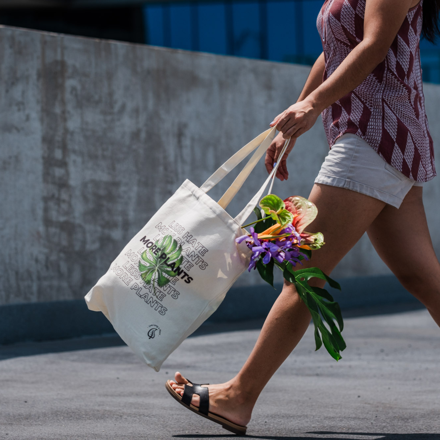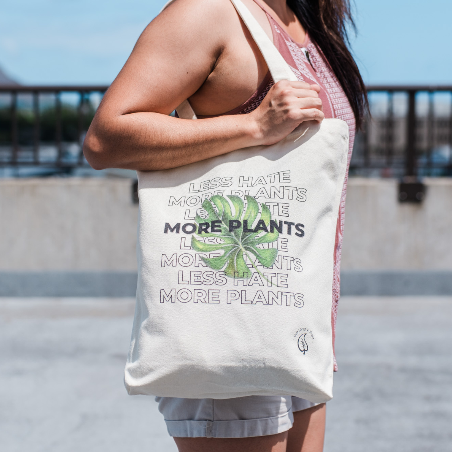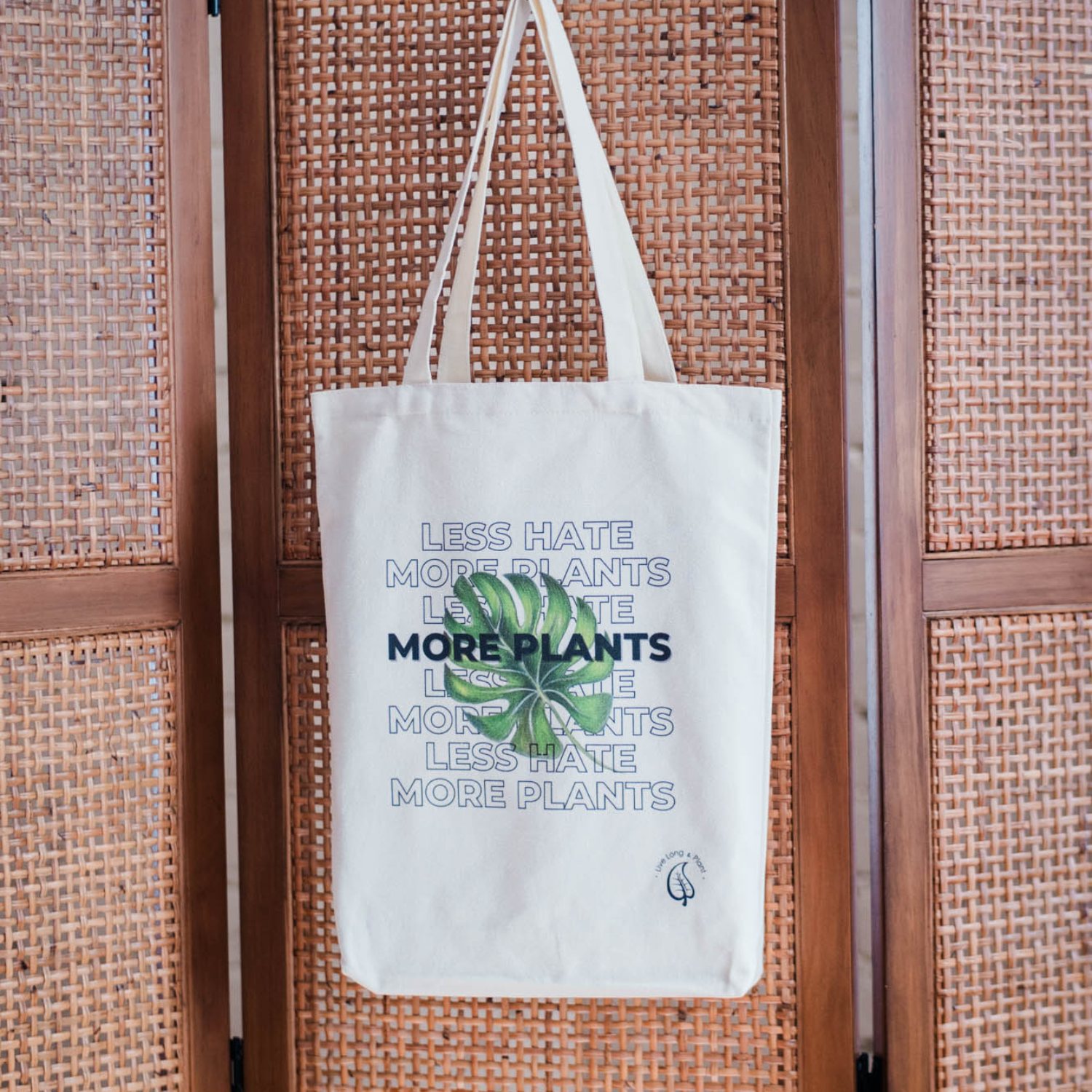 Plant-Inspired Canvas Tote Bag, Less Hate More Plants