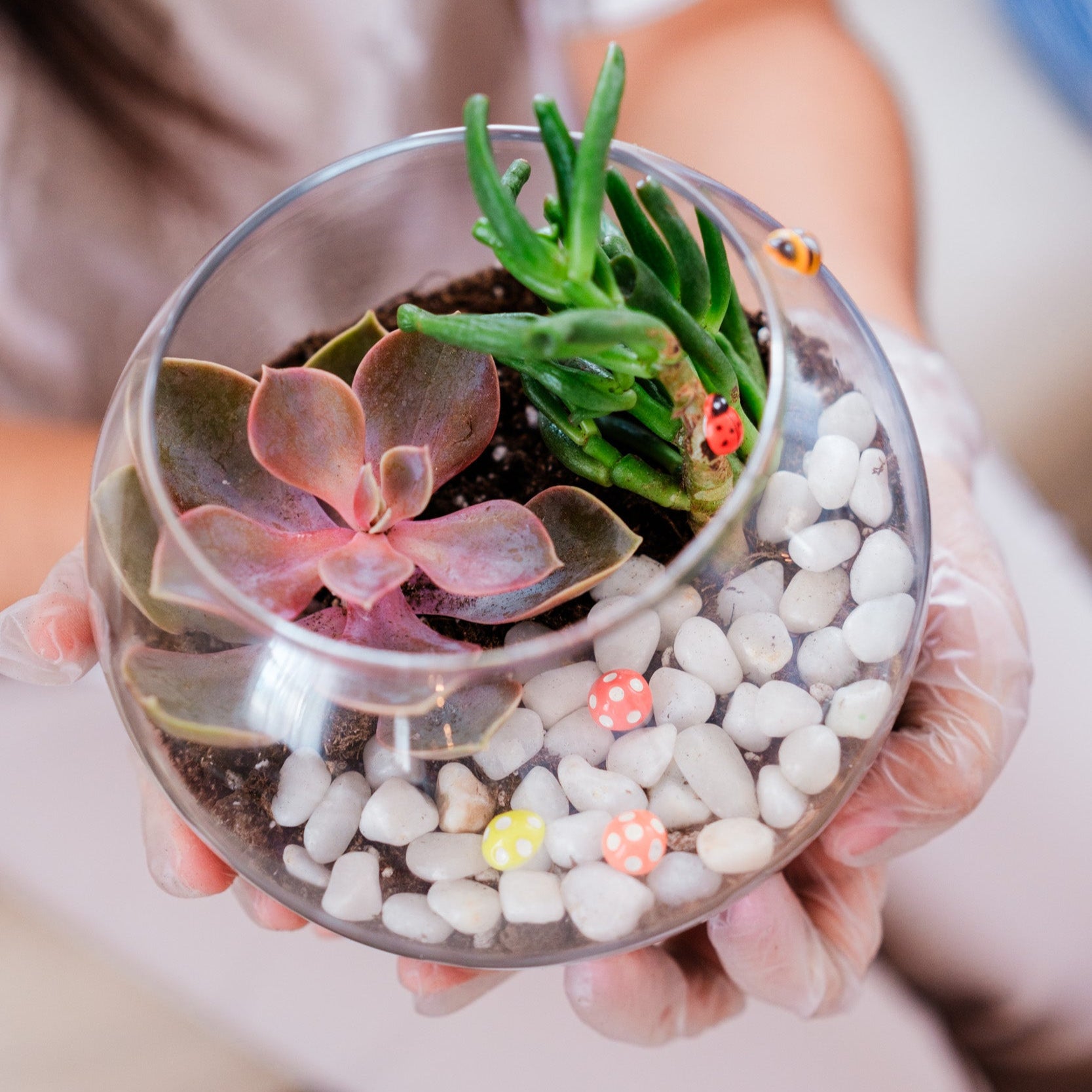 Hands-on Terrarium Creation: Take home your very own handmade succulent terrarium masterpiece in a 6" glass bowl!